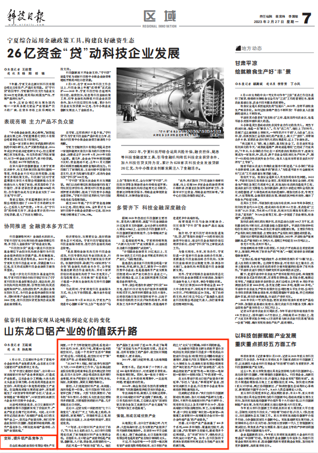 2月27日,《科技日報》“區域”專刊聚焦龍口鋁產業《依靠科技創新實現從論噸稱到論克賣的變化——山東龍口鋁產業的價值躍升路》,南山鋁業作為龍口市行業龍頭企業代表被權威報道。