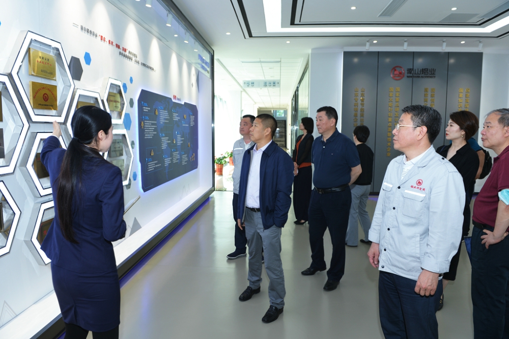 范順科副書記一行先后參觀了南山鋁業下屬的東海電廠、氧化鋁、電解鋁、擠壓型材、板帶事業部、鍛造公司、檢測中心、南山鋁業科技品牌展覽館等地。對南山鋁業在產業鏈運作、科技創新、產品應用等方面取得的發展成果給予了充分肯定。南山鋁業總經理呂正風圍繞生產經營、技術裝備、科技創新、節能環保等方面做了相關情況匯報,并闡述了當前面臨的形勢和問題,以及公司今后的發展規劃。