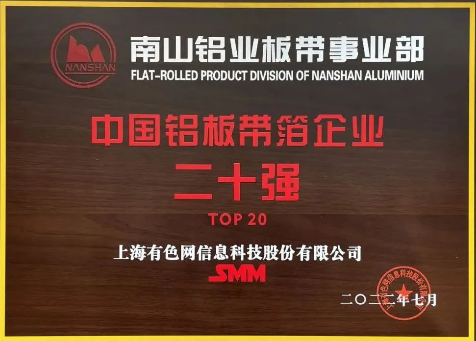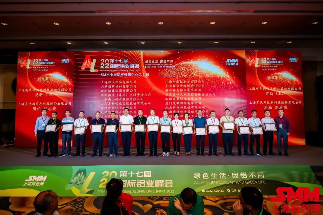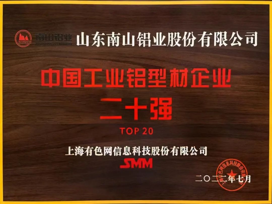 7月20日-22日,2022年SMM(第十七屆)國際鋁業(yè)峰會(huì)在江蘇蘇州舉行。山東南山鋁業(yè)股份有限公司旗下鋁材公司和板帶事業(yè)部分別獲得“中國工業(yè)鋁型材企業(yè)二十強(qiáng)”和“中國鋁板帶箔企業(yè)二十強(qiáng)”榮譽(yù)稱號。